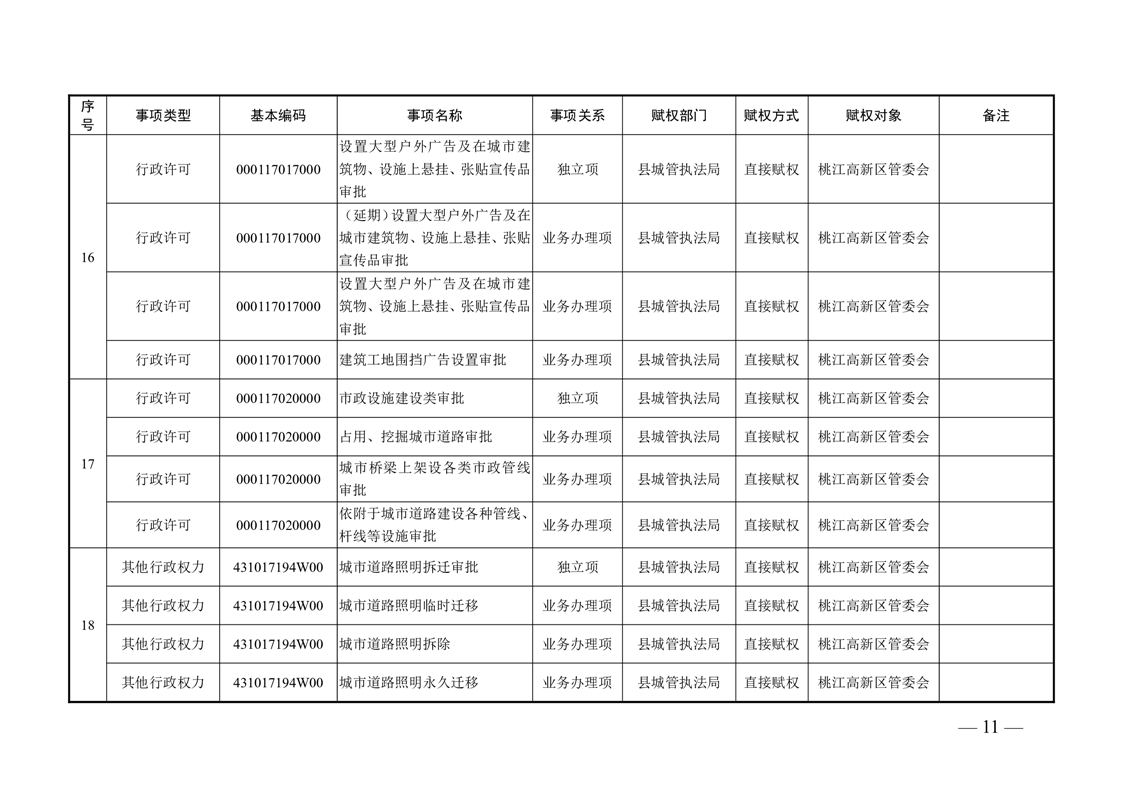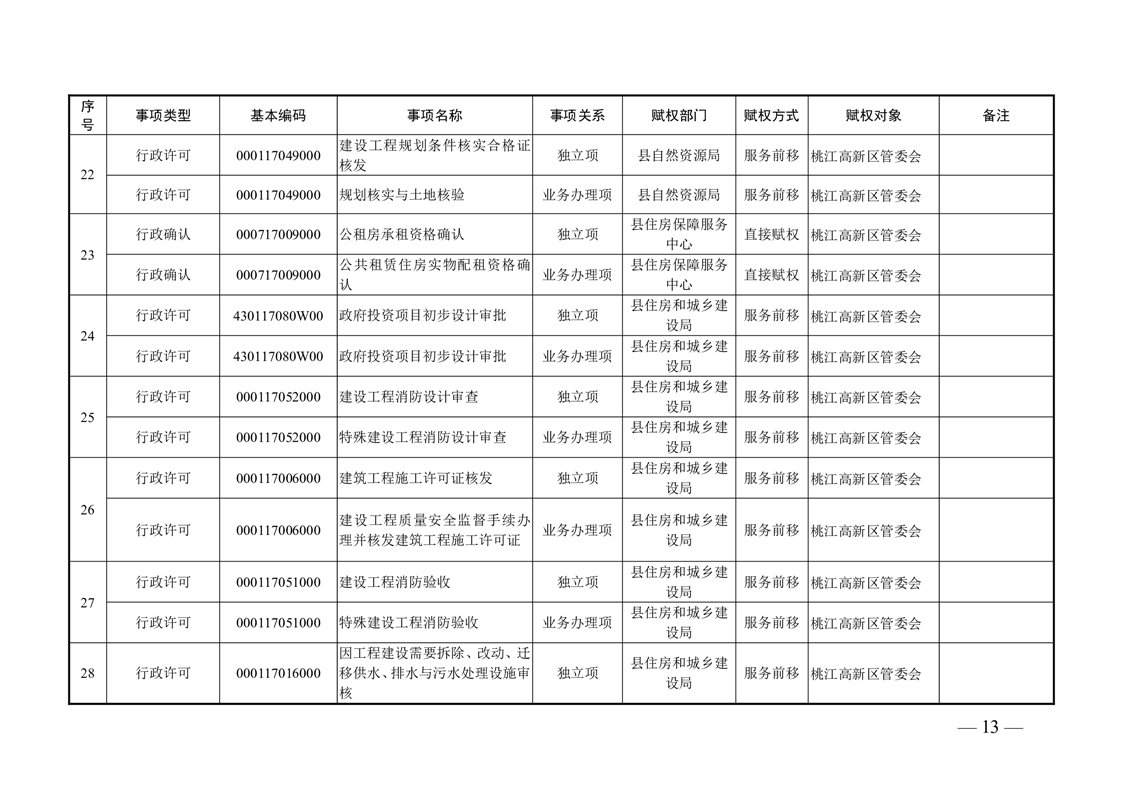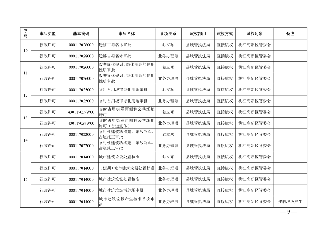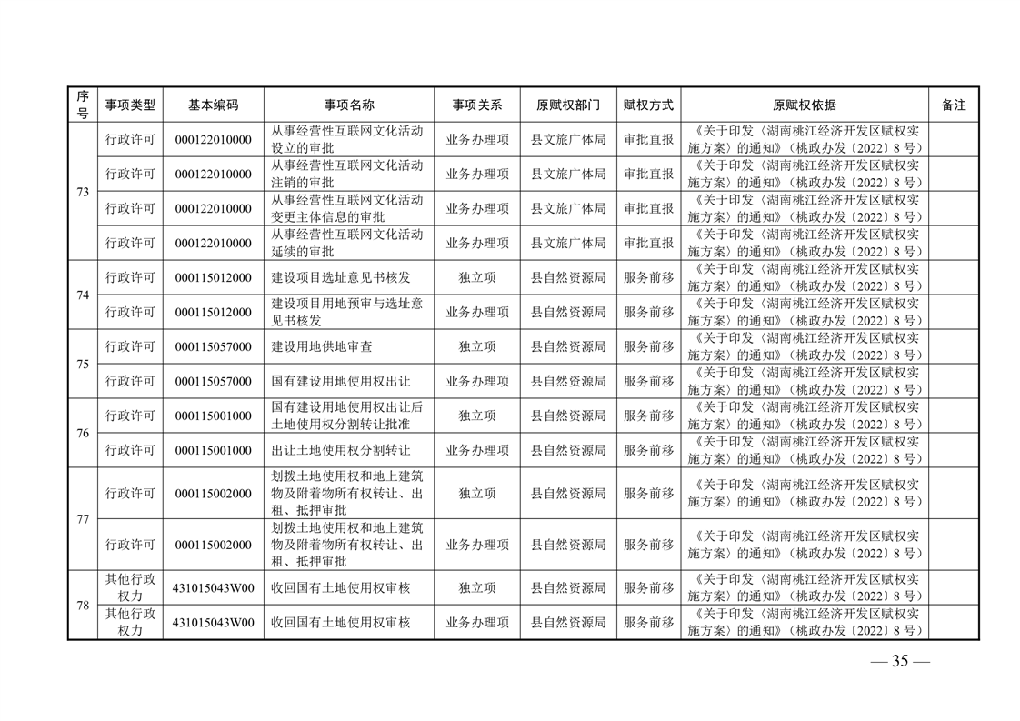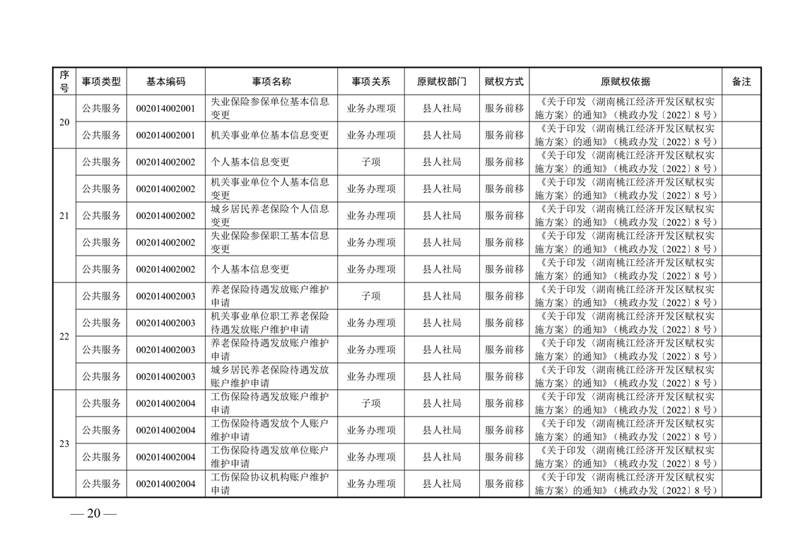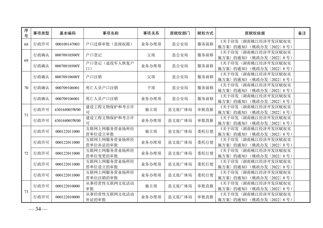 桃江县人民政府 关于印发《桃江高新区行政审批赋权事项保留清单》《桃江高新区行政审批赋权事项取消清单》《桃江高新区社会管理和公共服务职能新增事项清单》《桃江高新区社会管理和公共服务职能保留事项清单》《桃江高新区社会管理和公共服务职能移交事项清单》的通知