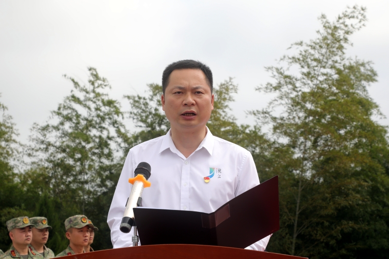 随后,全场奏唱《中华人民共和国国歌》,激昂的旋律回荡在纪念园上空。周登高深情讲述了马迹塘战役中烈士们浴血奋战、为国捐躯的英勇事迹,让在场人员再次感受到革命先辈的无畏精神。事迹讲述完毕,全场肃立,向烈士默哀一分钟,以此寄托哀思。
