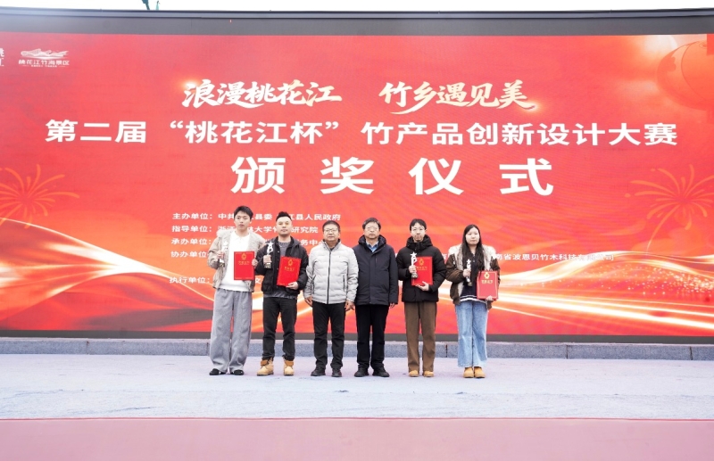 3月3日下午,第二届“桃花江杯”竹产品创新设计大赛颁奖仪式在桃花江竹海景区举行。经过激烈角逐,秦勇的《拾光》与胡波的《扇·竹馆》从710件作品中脱颖而出,摘得金奖。县委副书记、县长沈澍,县政协主席杨凯波为获奖选手颁奖。