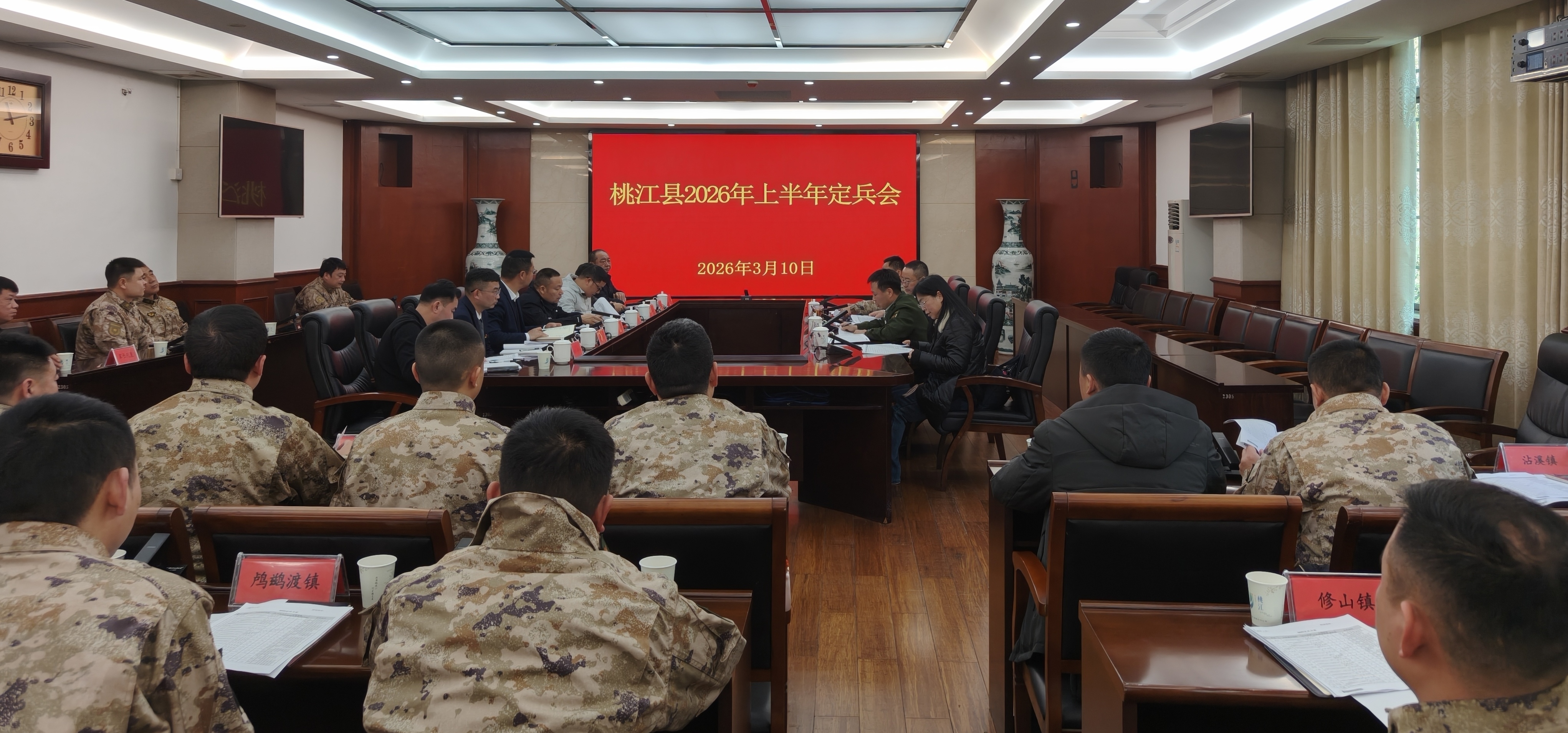 3月10日上午,桃江县2026年上半年征兵定兵会召开,全面总结前期征兵工作成效,集体审定预定新兵和替补对象名单,部署后续收尾冲刺工作,确保征兵工作圆满完成。县委常委、常务副县长熊跃明出席会议并讲话,县委常委、县人武部政委赵文华主持会议。