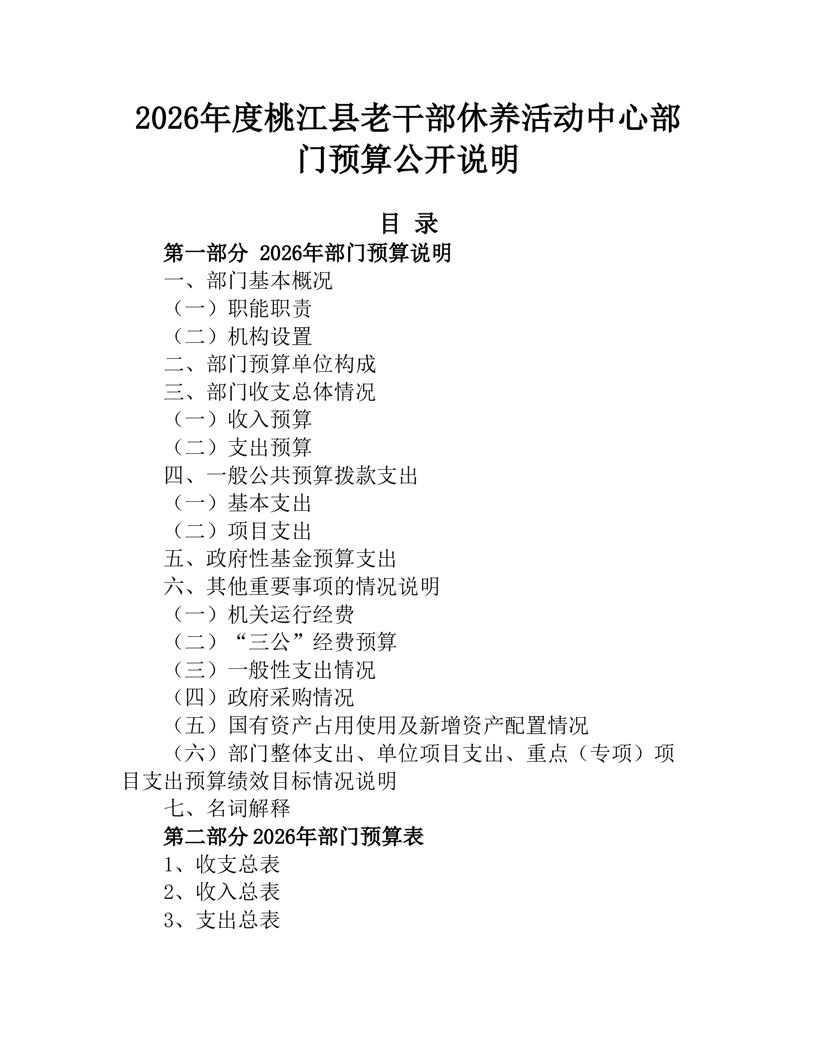 2026年度桃江县老干部休养活动中心部门预算公开说明