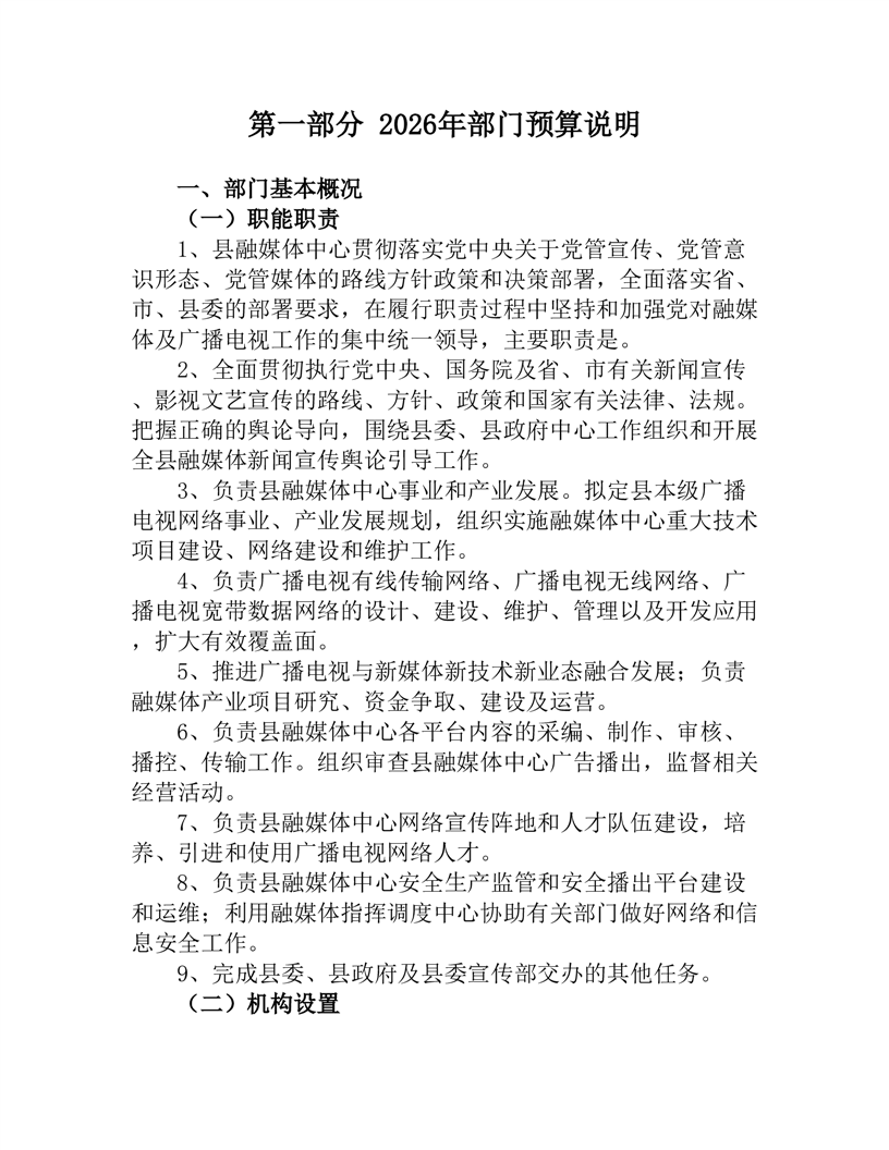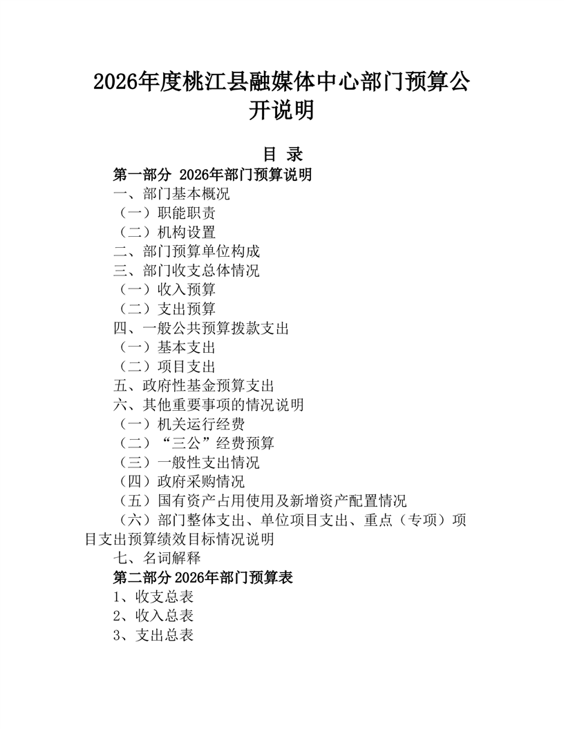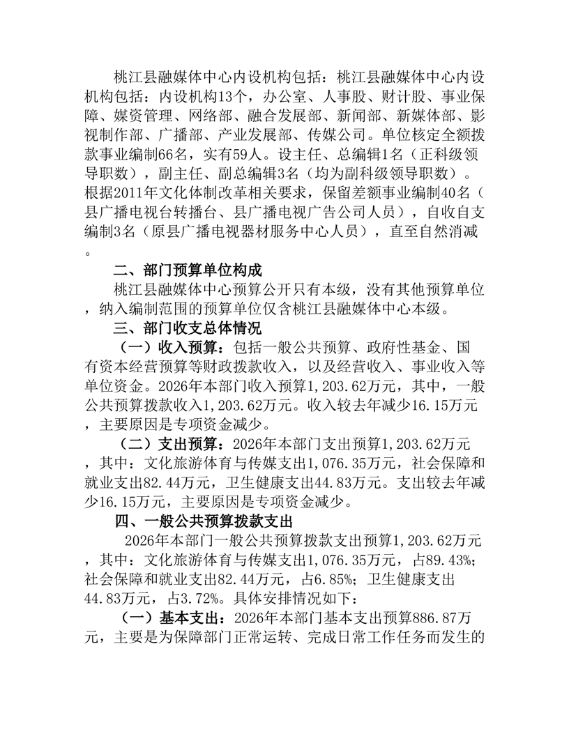 2026年度桃江县融媒体中心部门预算公开说明