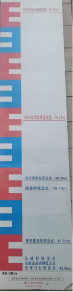 九峰村最低点:杨家渡,齐平资江水位50.62米;