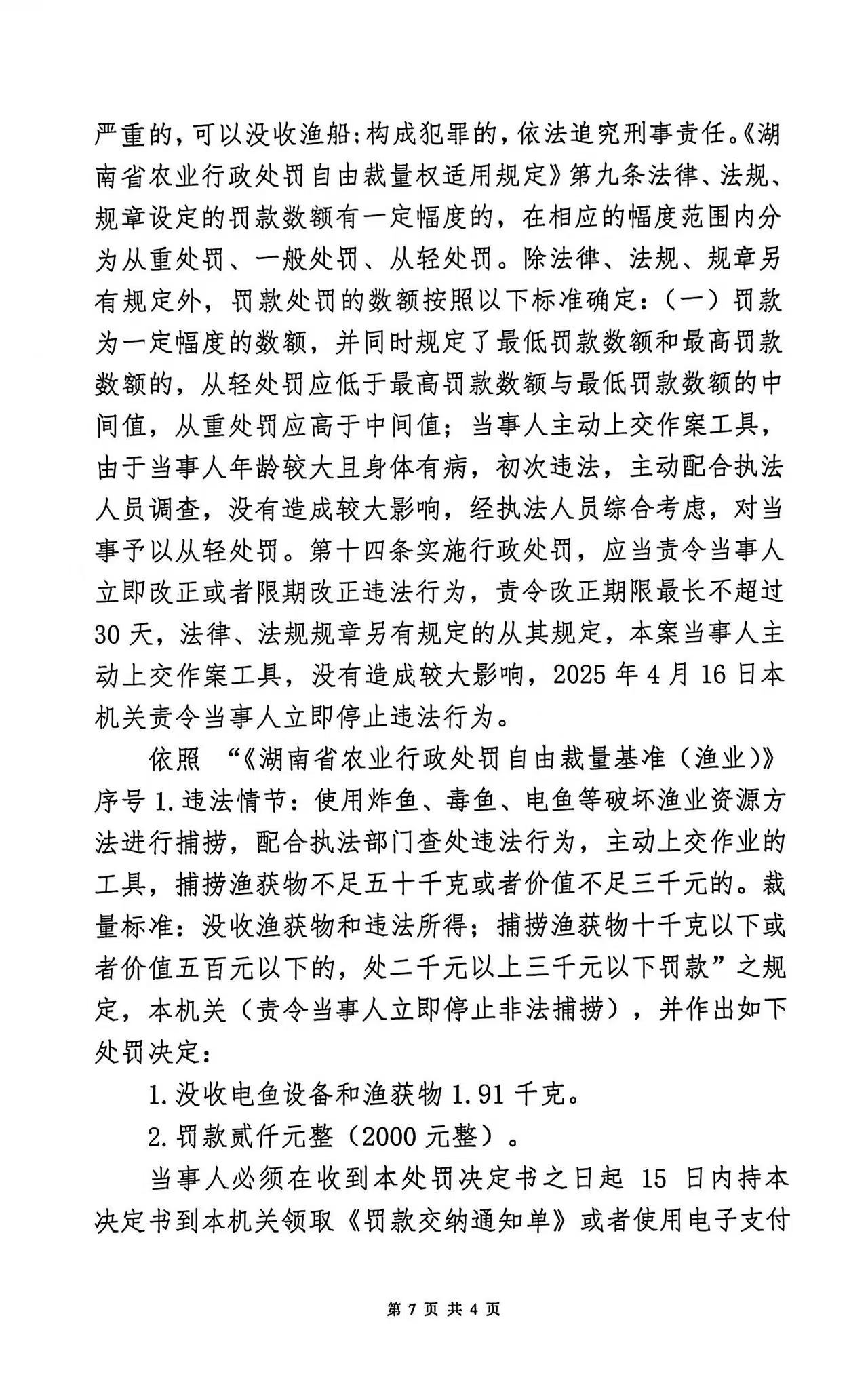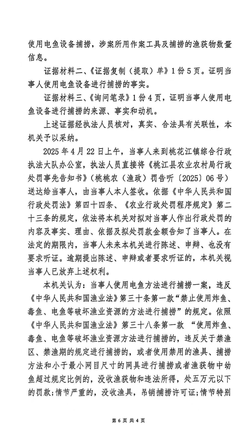 行政处罚决定书 桃农农(渔政)罚〔2025〕06号