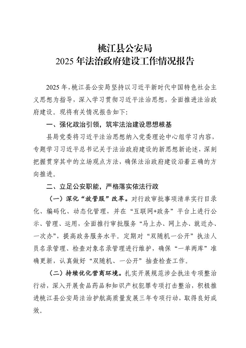 桃江县公安局2025年法治政府建设工作情况报告