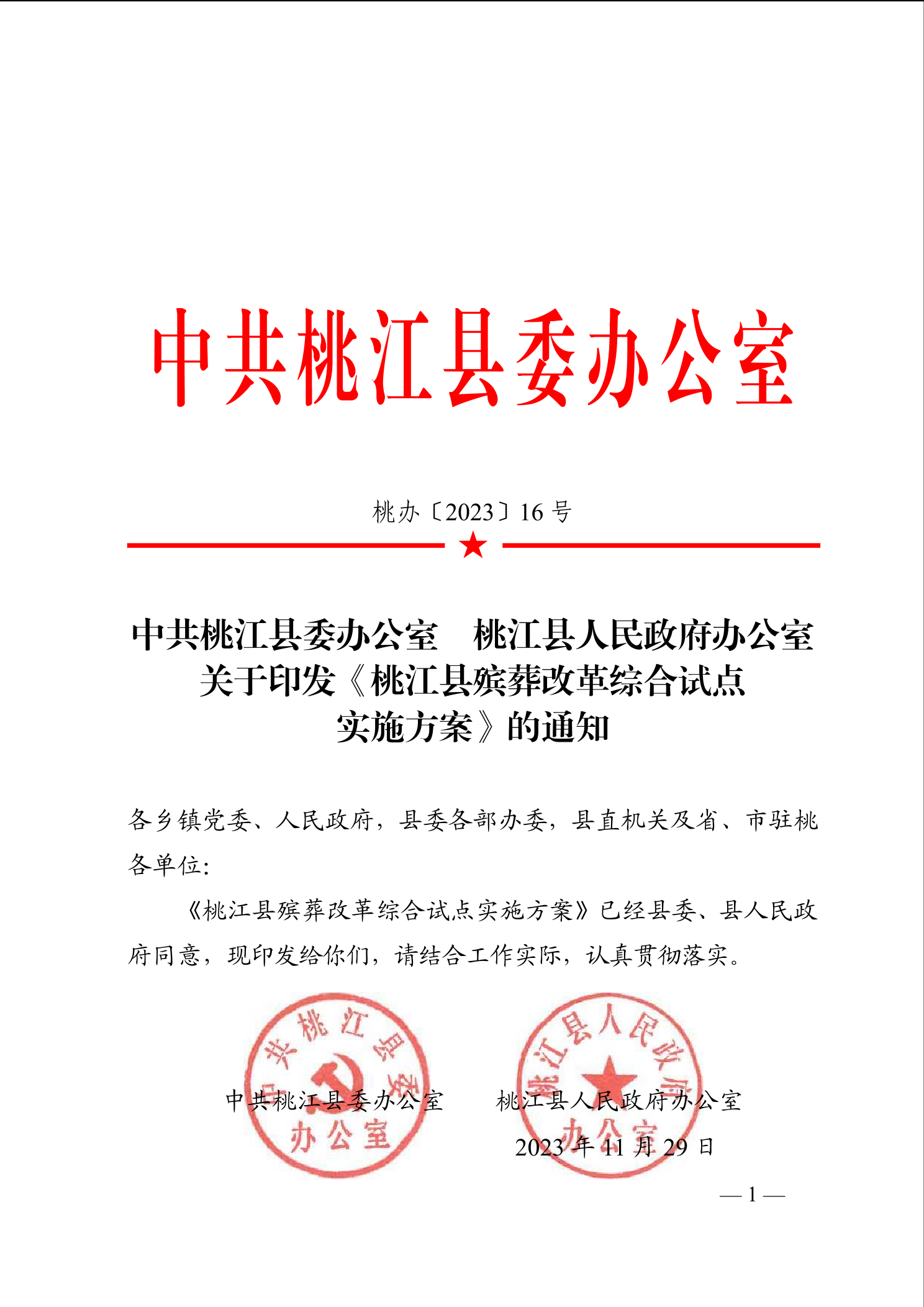关于印发《桃江县殡葬改革综合试点实施方案》的通知