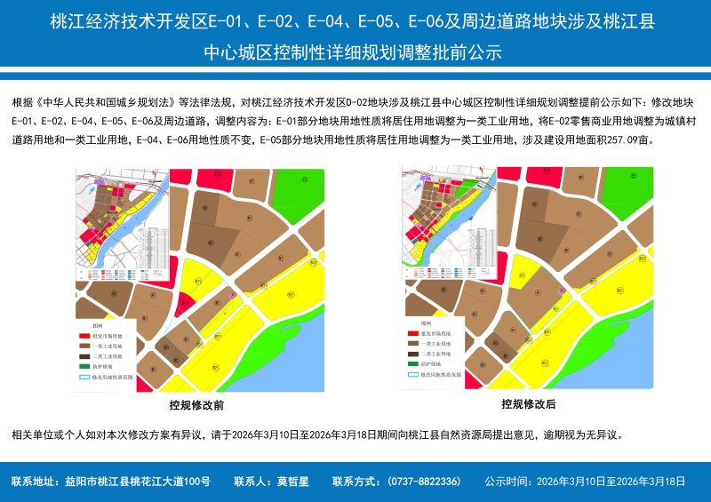 桃江经济技术开发区E-01、E-02、E-04、E-05、E-06及周边道路地块涉及桃江县中心城区控制性详细规划调整批前公示