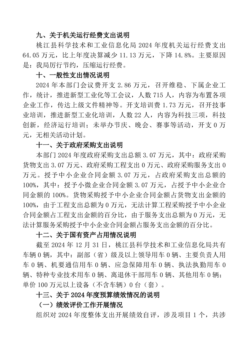 桃江县科学技术和工业信息化局2024年部门决算公开说明