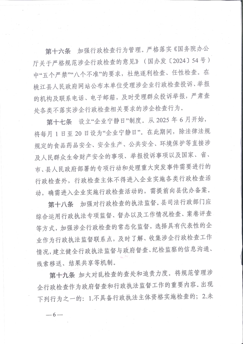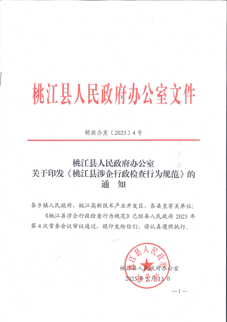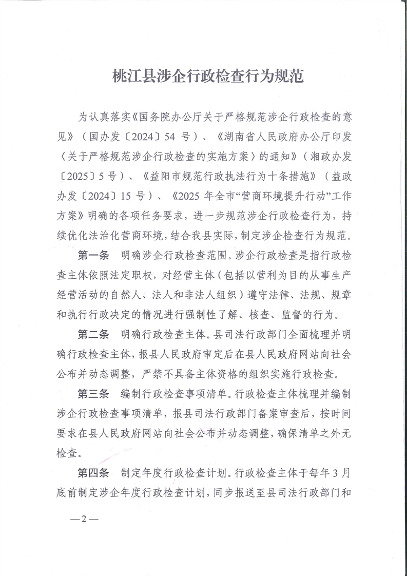 关于印发《桃江县涉企行政检查行为规范》的通知