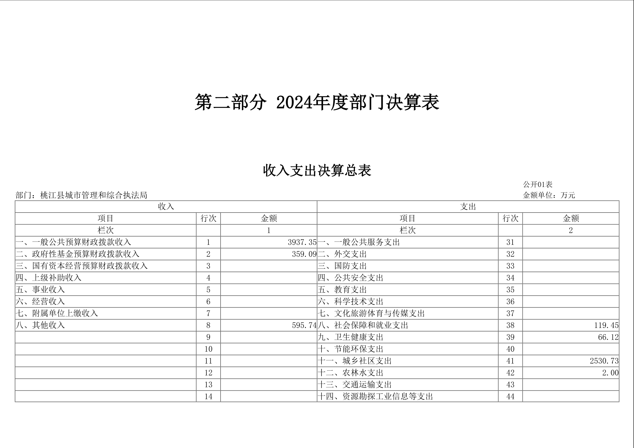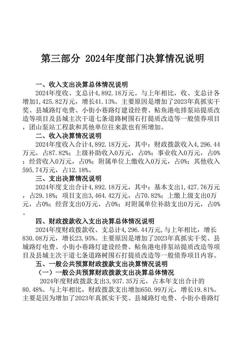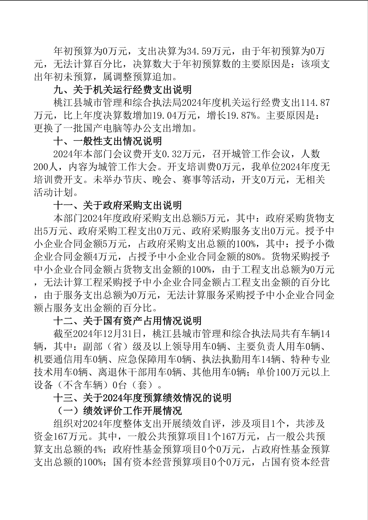 桃江县城市管理和综合执法局2024年部门决算公开说明