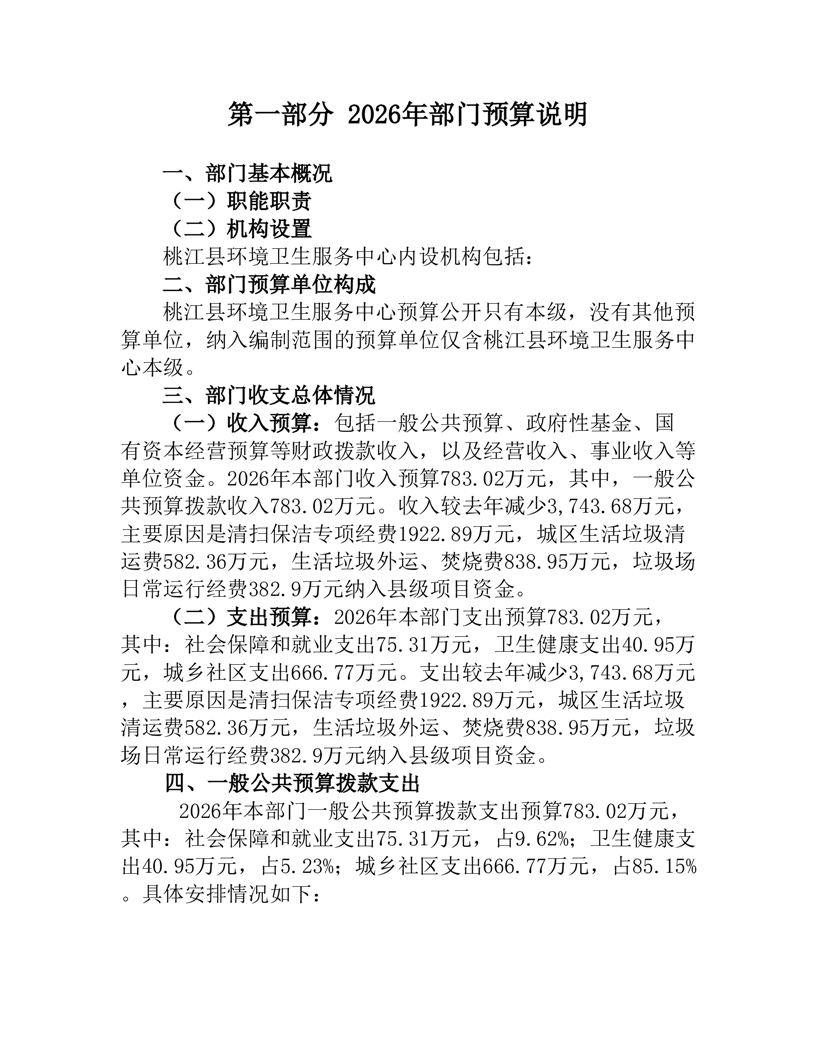 桃江县环境卫生服务中心2026年部门预算公开说明