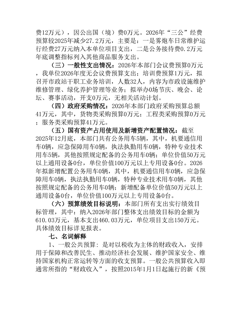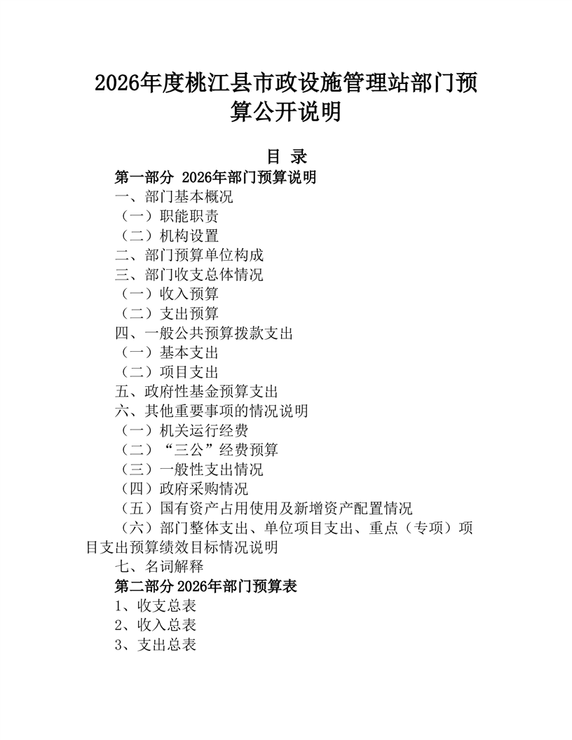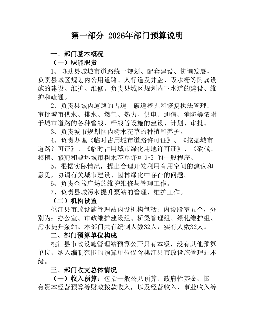 桃江县市政设施管理站2026年部门预算公开说明
