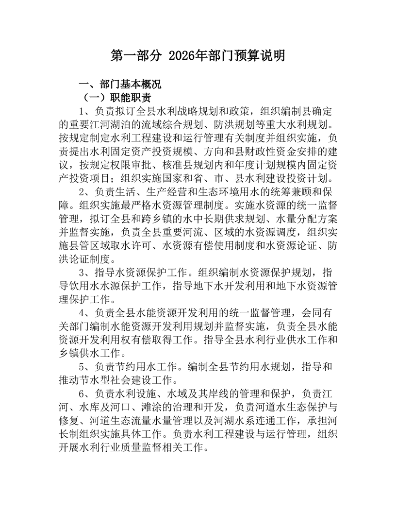 桃江县水利局2026年部门预算公开说明
