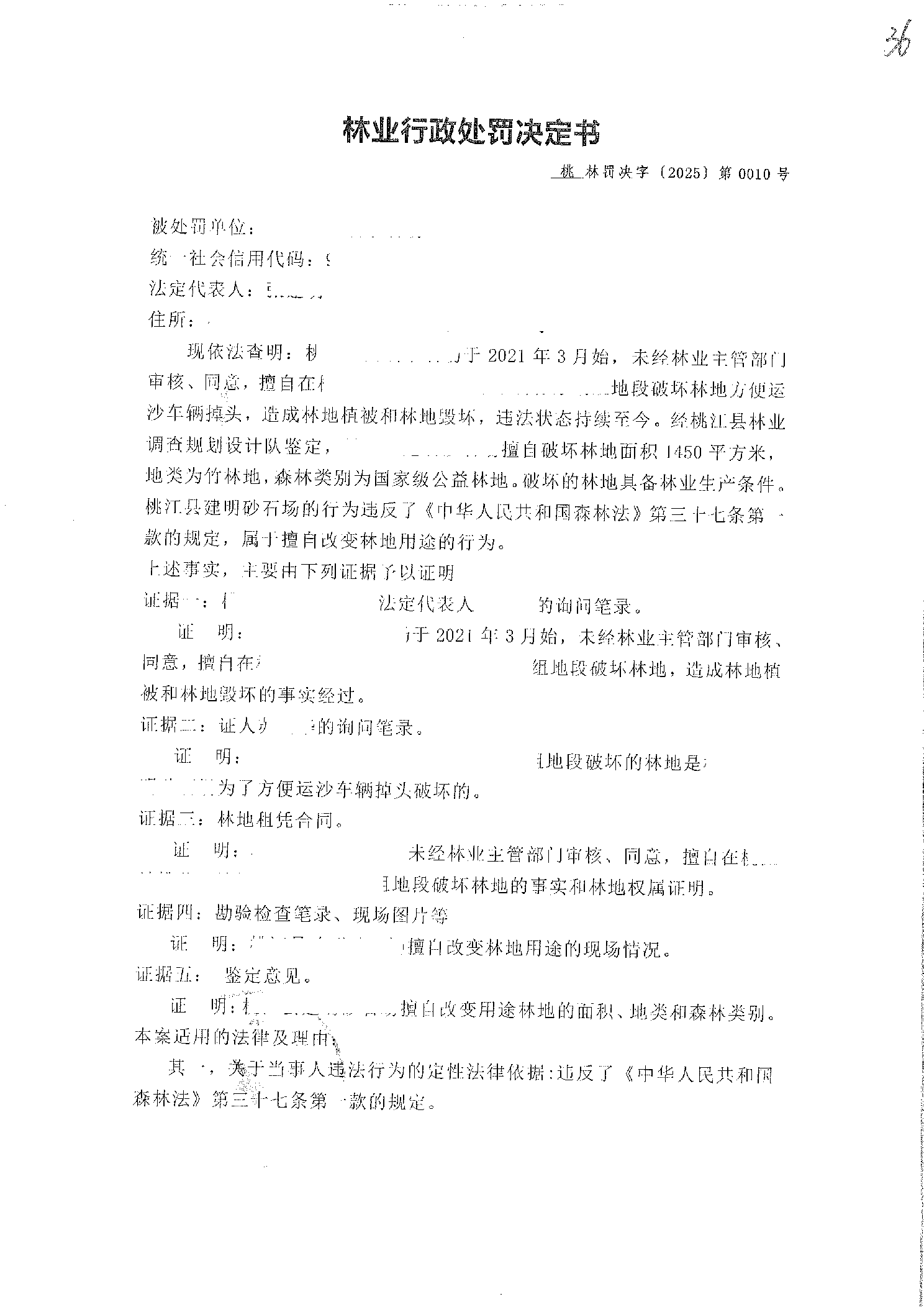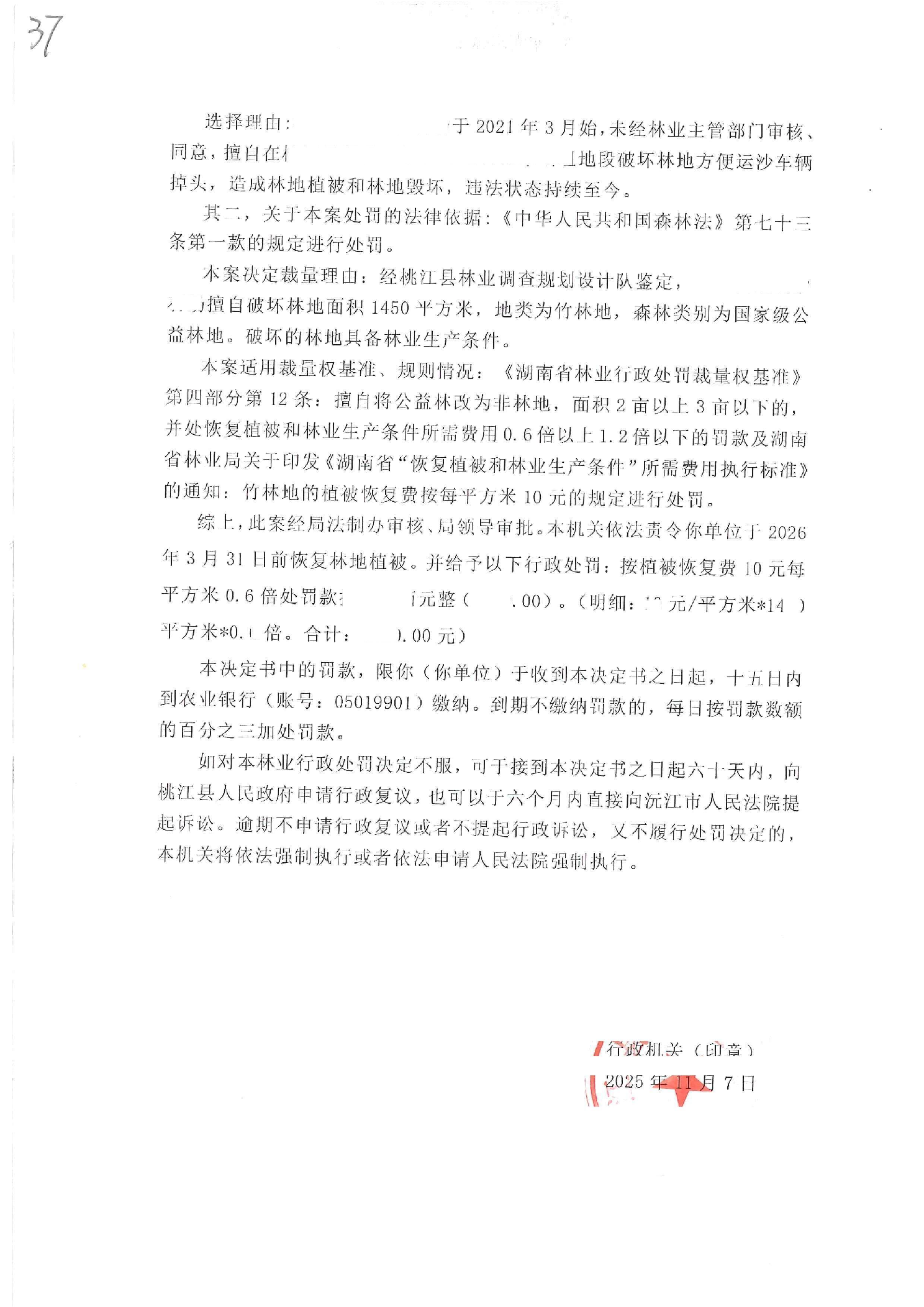 张某某造成林地植被和林地毁坏的林业行政处罚决定书