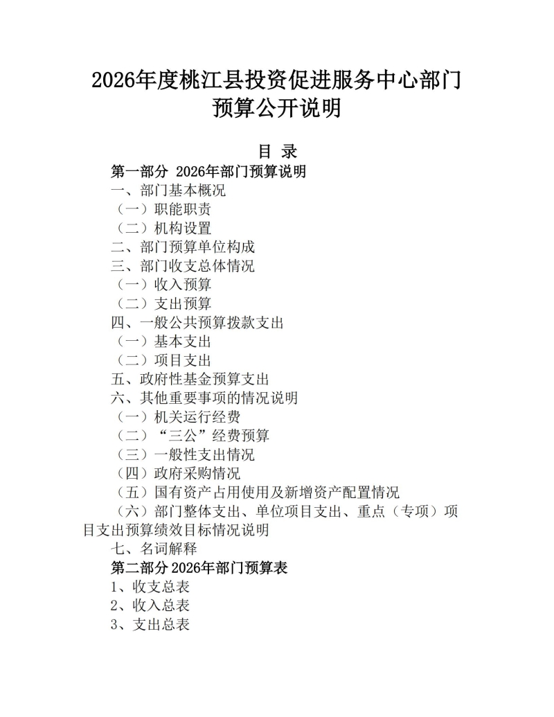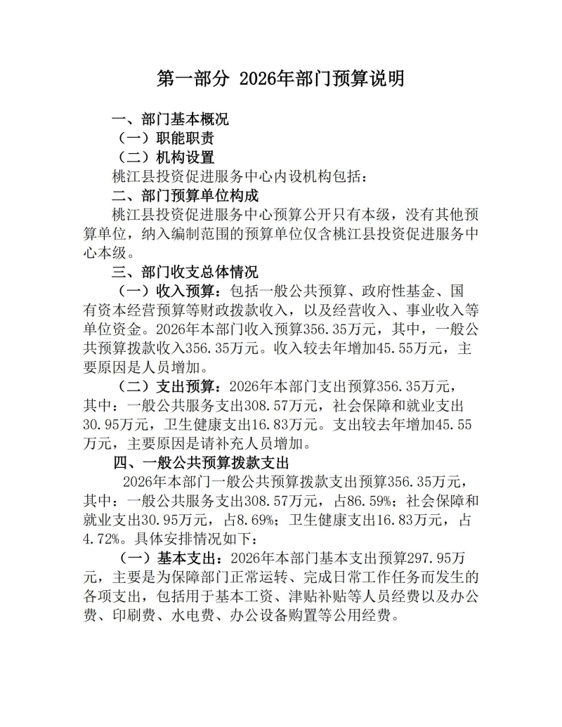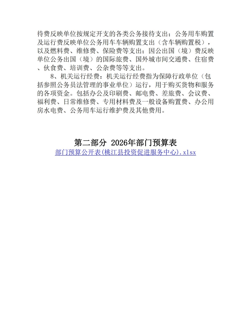 2026年度桃江县投资促进服务中心部门预算公开说明