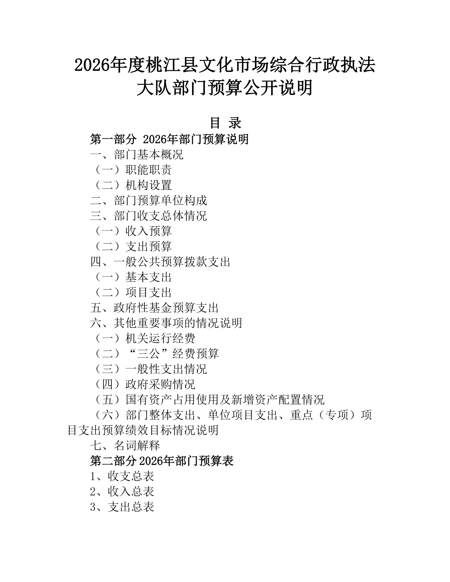 2026年度桃江县文化市场综合行政执法大队部门预算公开说明