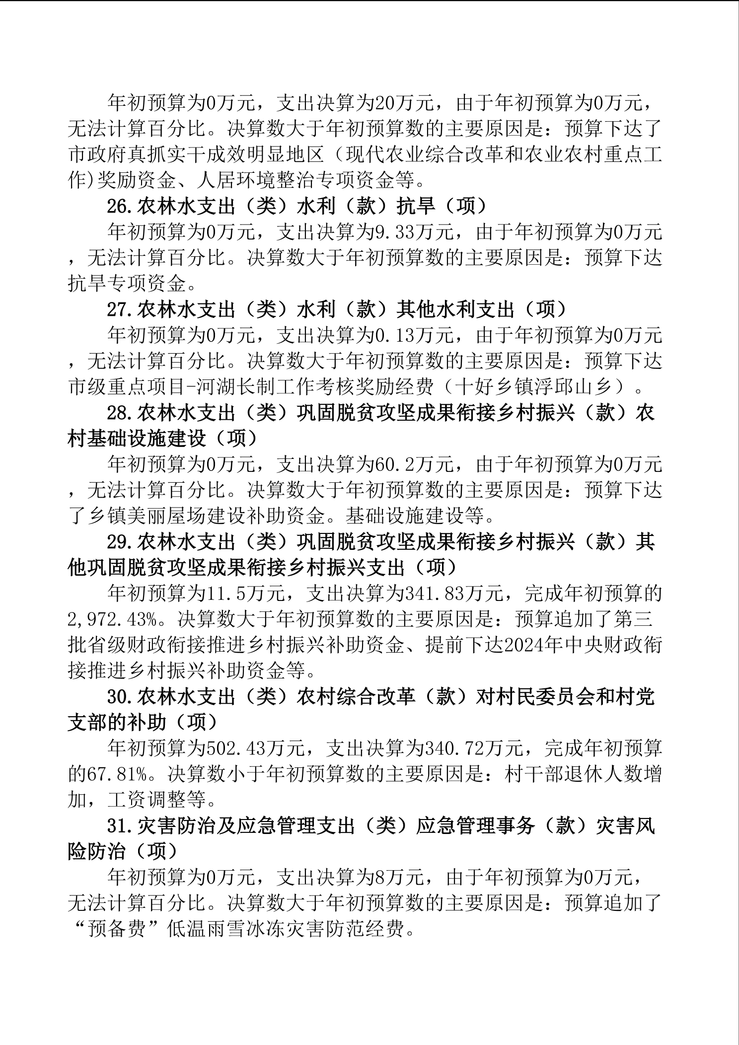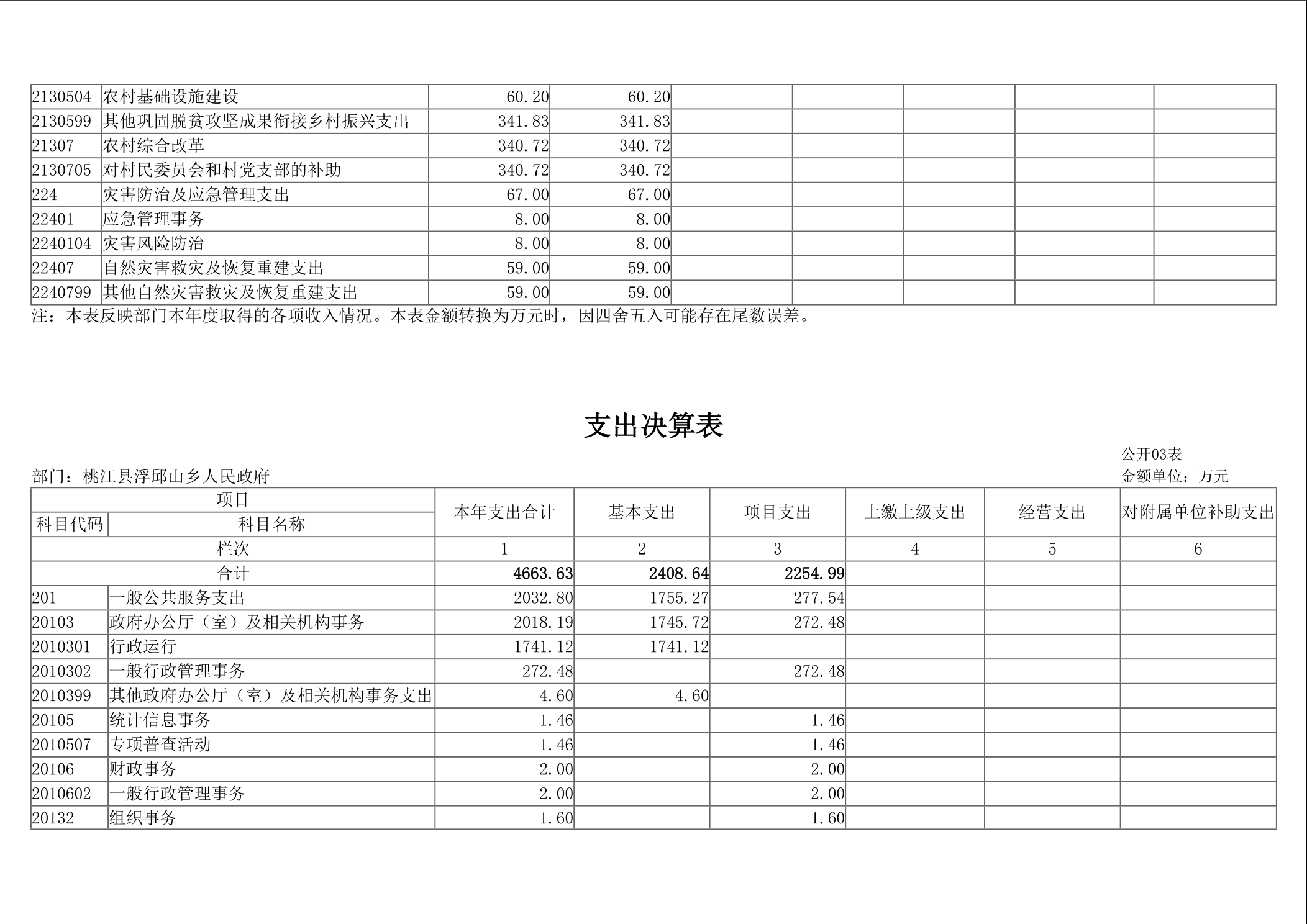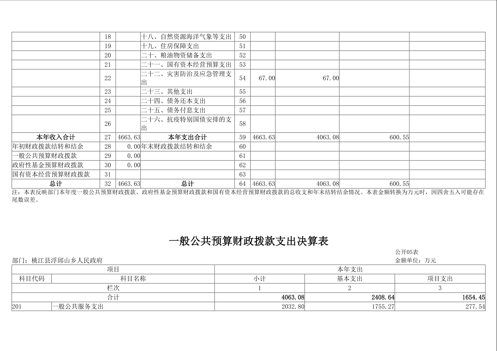 2024年浮邱山乡人民政府部门决算公开说明
