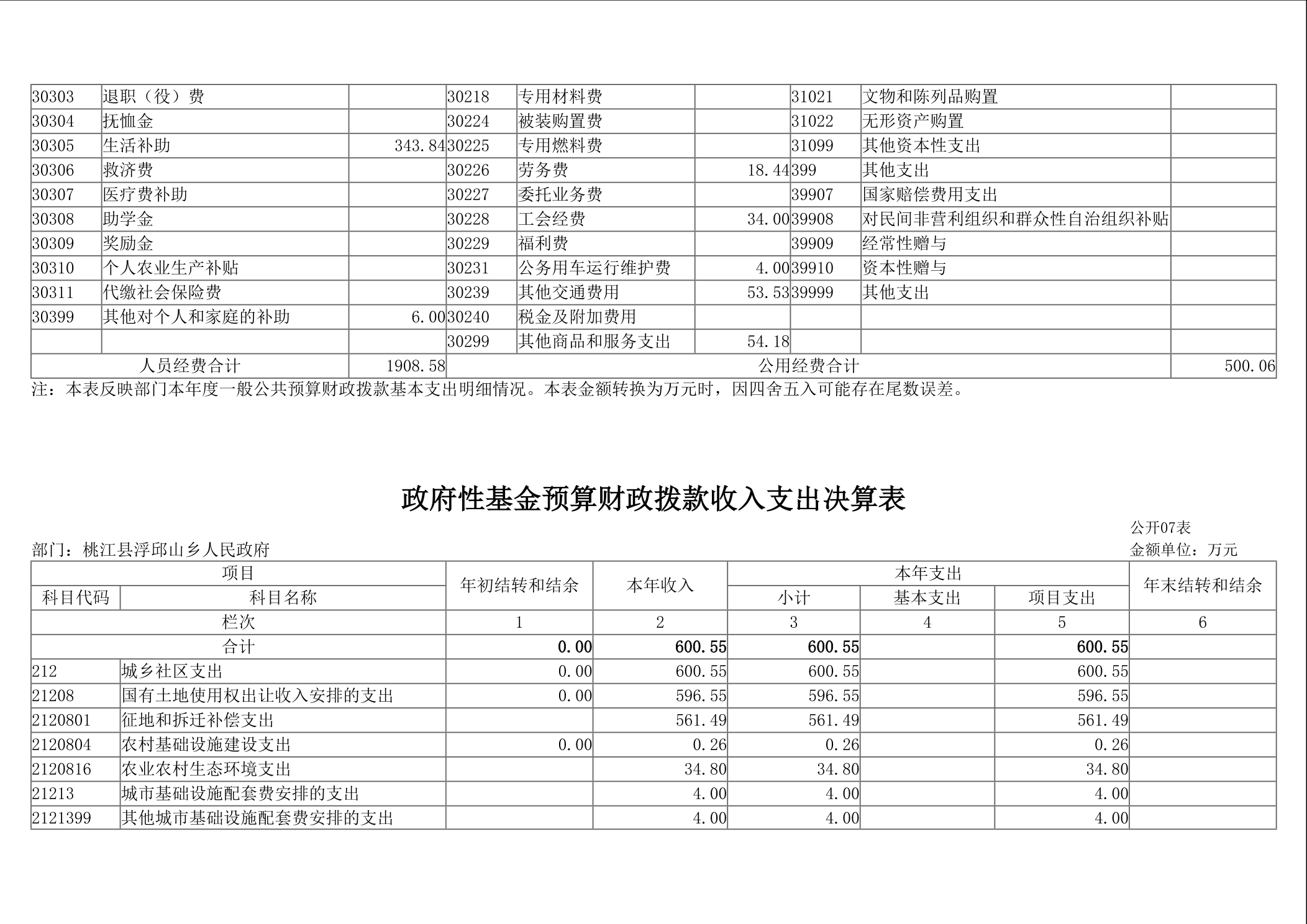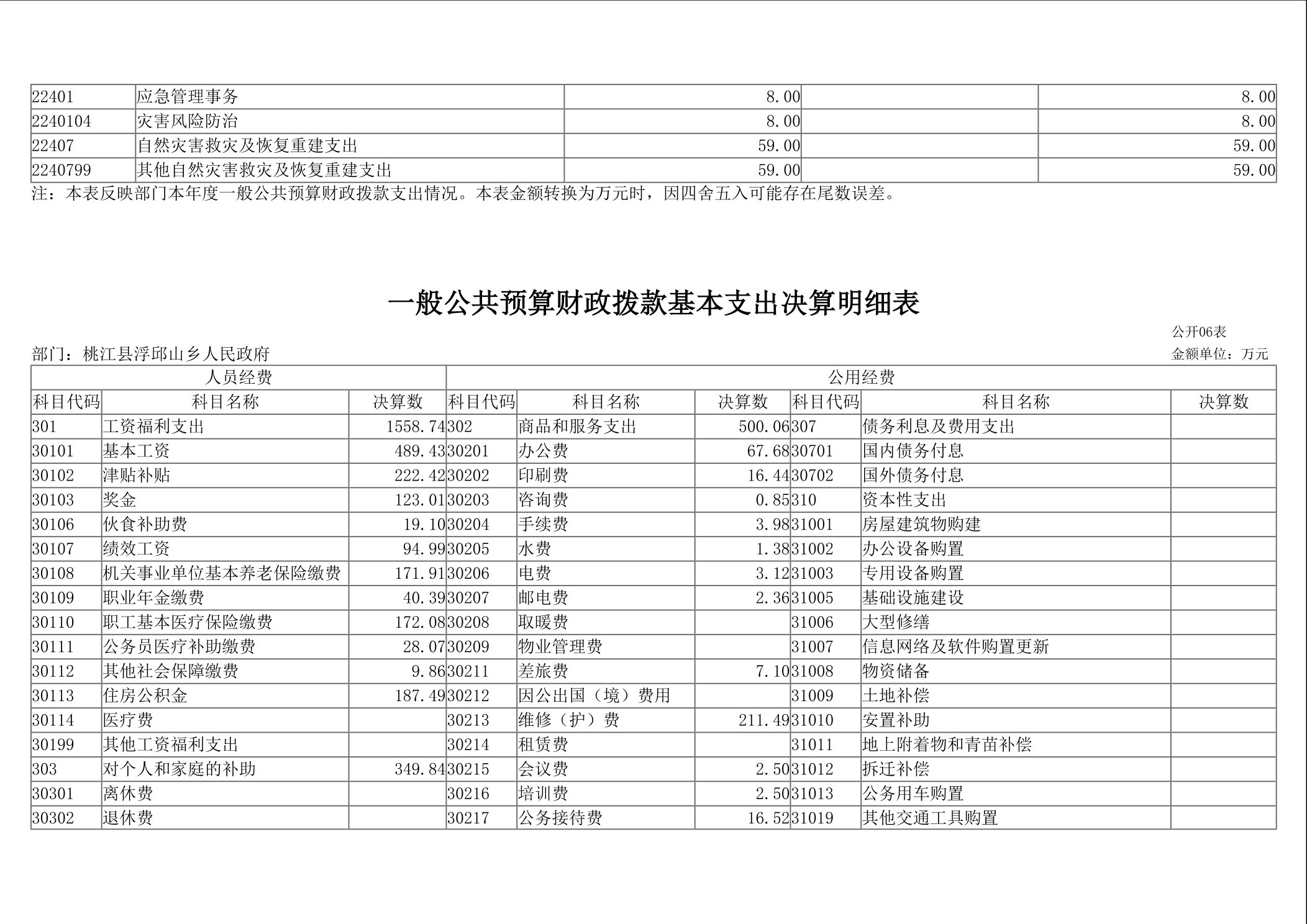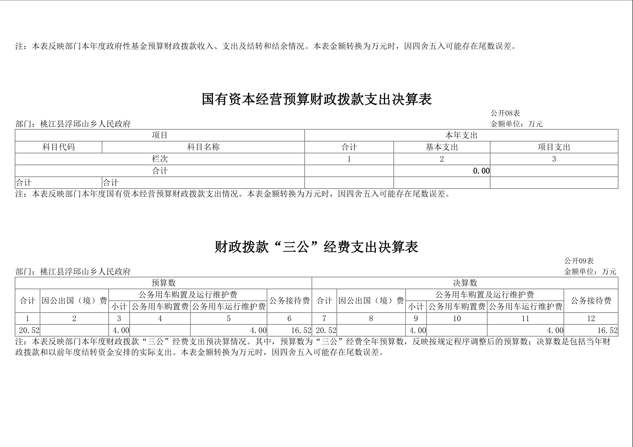 2024年浮邱山乡人民政府部门决算公开说明