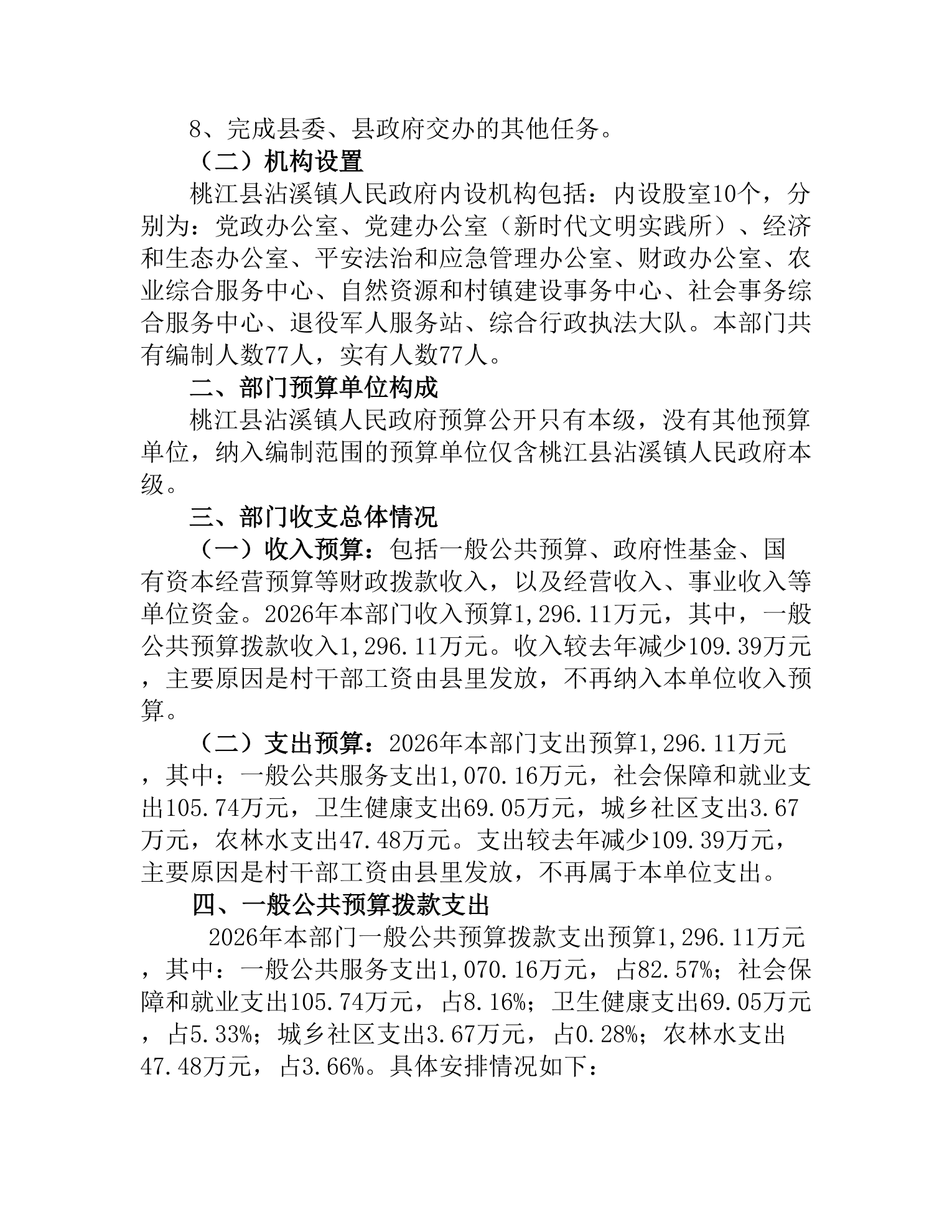 沾溪镇人民政府2026年部门预算公开