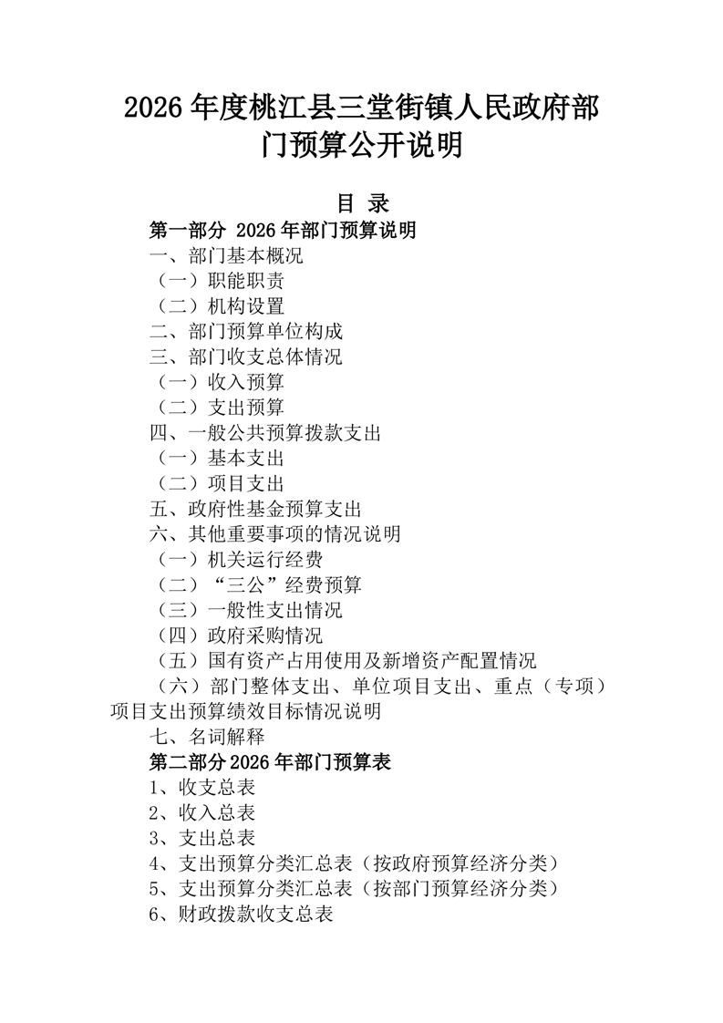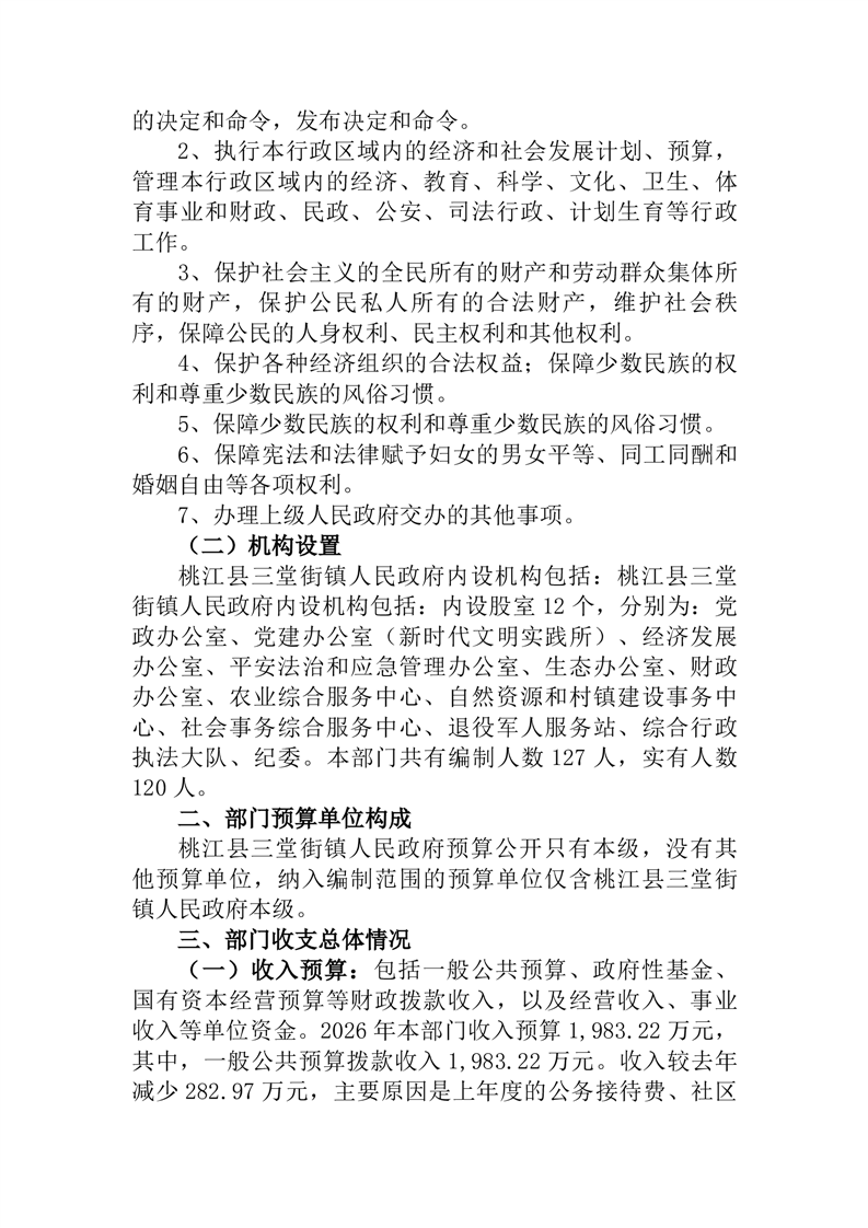 桃江县三堂街镇人民政府2026年部门预算公开说明