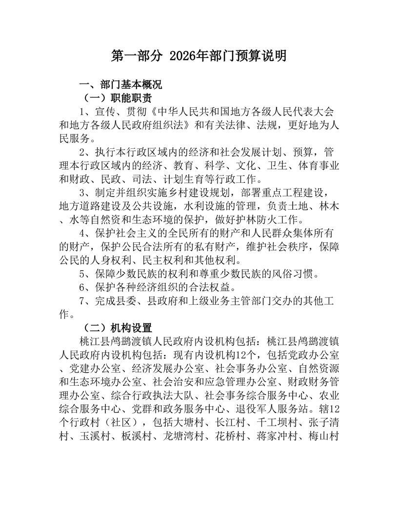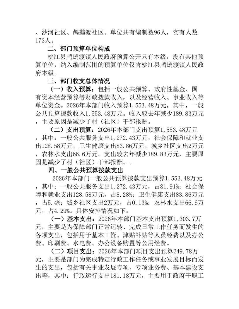 2026年度桃江县鸬鹚渡镇人民政府部门预算公开说明