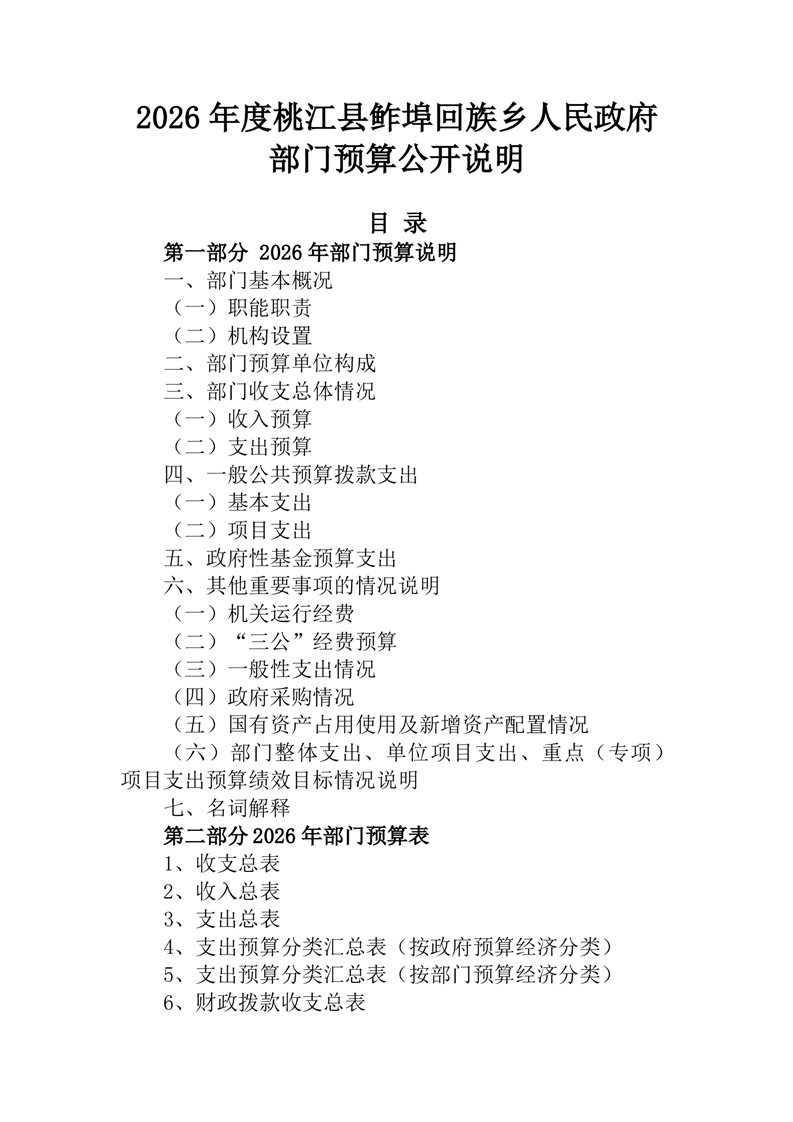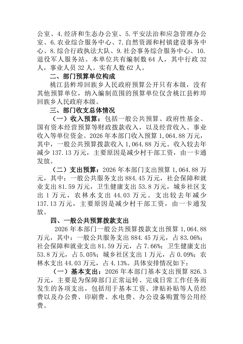 2026年度桃江县鲊埠回族乡人民政府部门预算