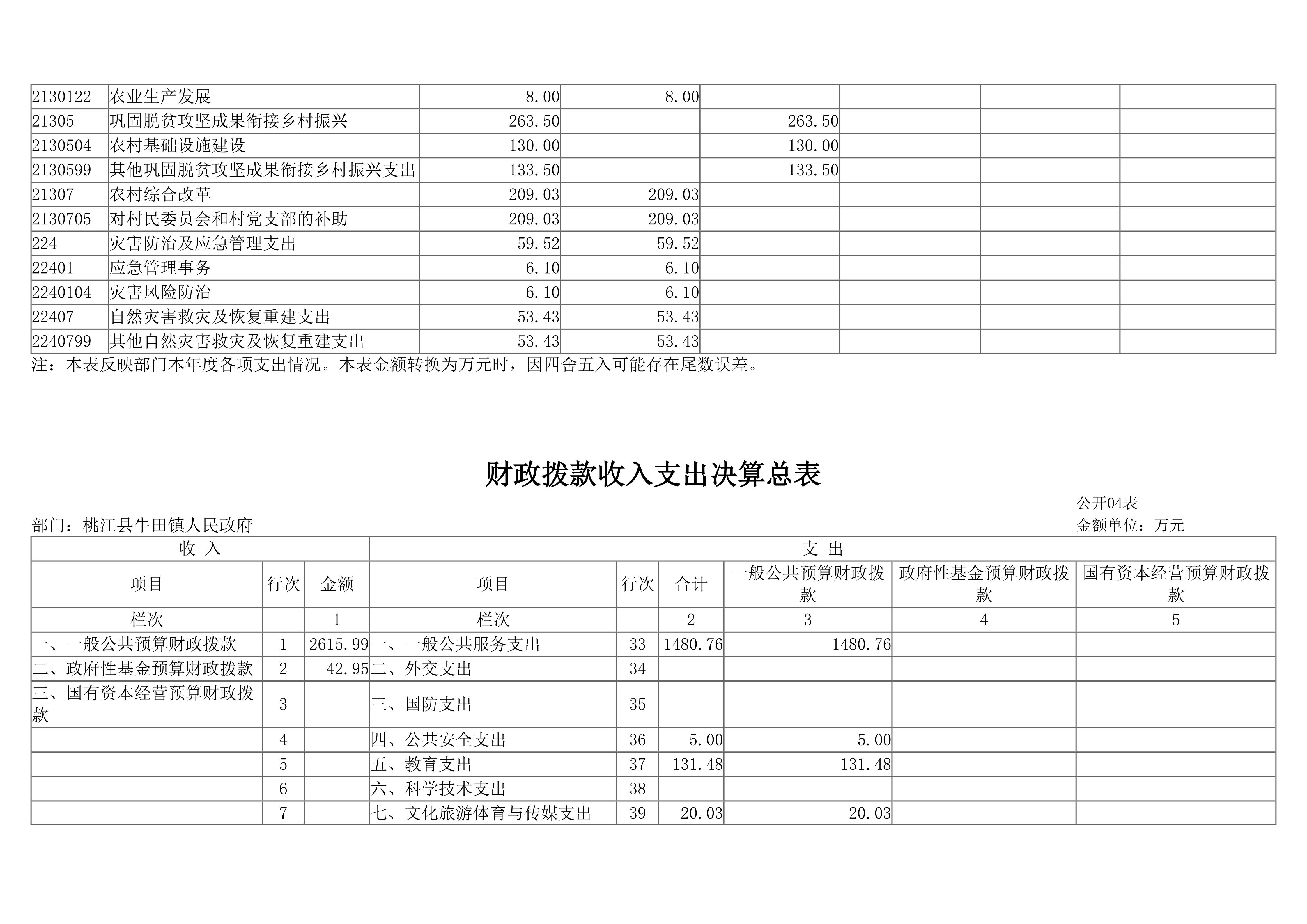 桃江县牛田镇人民政府2024年部门决算公开说明